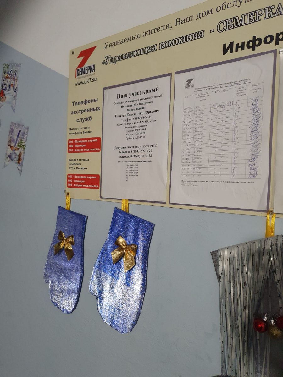 Управляющая компания – СЕМЕРКА так же не осталась в стороне и сделала нам необходимые условия для подключения новогоднего освещения входной зоны, потому что именно новогодняя иллюминация будет смотреться особенно красиво и радовать жильцов нашего дома и жителей соседних домов.