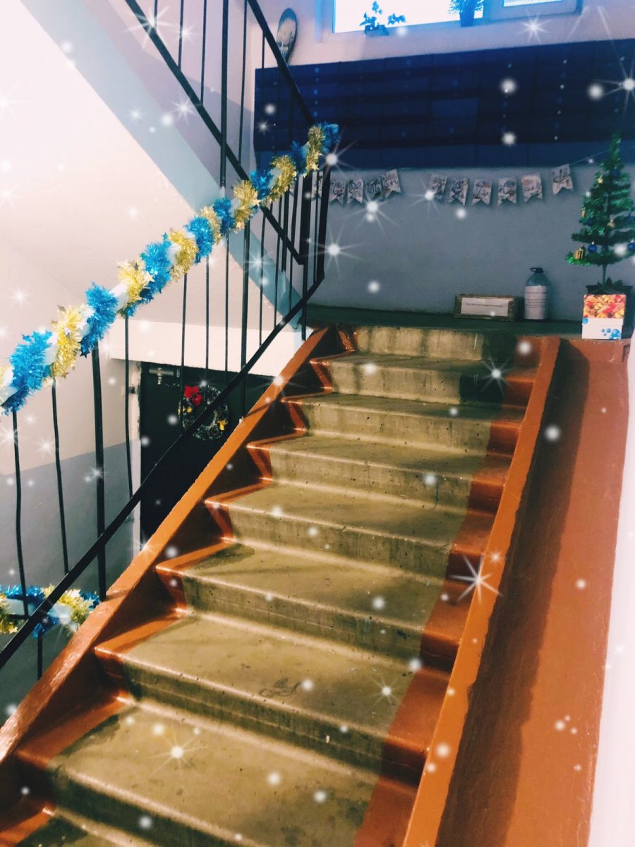 Какой же Новый год без Ёлочки? В нашем доме много детей, и для них самым важным и даже волшебным является нарядная Ёлочка, ведь именно под ней Дед Мороз раскладывает подарки. Вот и жильцы дома решили, что Ёлочка в подъезде, пусть даже небольшая, но должна быть. Такой нарядный символ приносит сказочно – новогоднюю атмосферу в наш дом, а значит и в сердца жильцов.